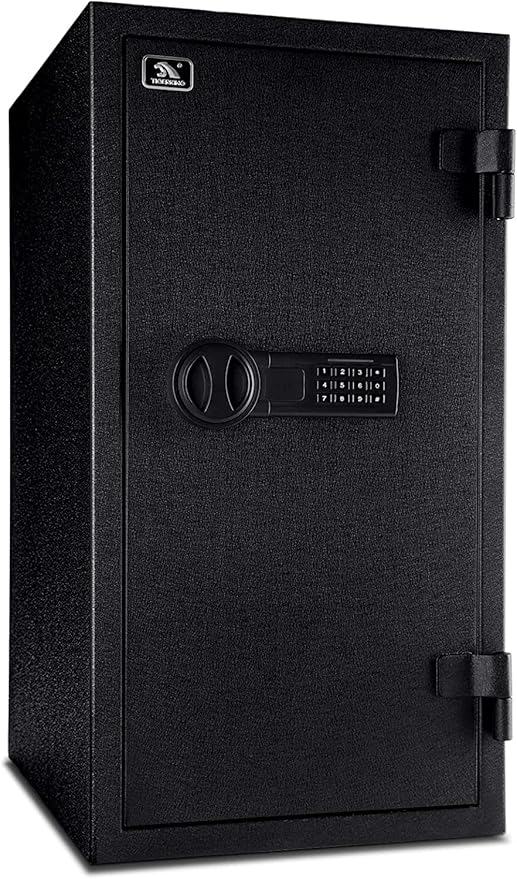 This one is a beast: 82 pounds of thickened steel, equipped with four 1-inch livelock bolts to prevent drilling and prying, and is fireproof for 30 minutes.